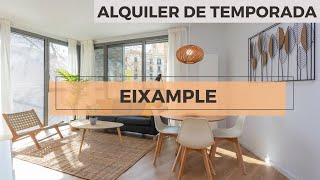 Piso de 57 m2 en alquiler temporal (de 32 días a 11 meses) en el distrito del Eixample de Barcelona. El inmueble se encuentra totalmente equipado y consta de dos dormitorios dobles, una cocina tipo office conectada a un salón exterior y luminoso con grandes ventanales, un baño con ducha. La vivienda está dotada de lavavajillas, aire acondicionado, calefacción, conexión a internet mediante fibra, lavadora y secadora.