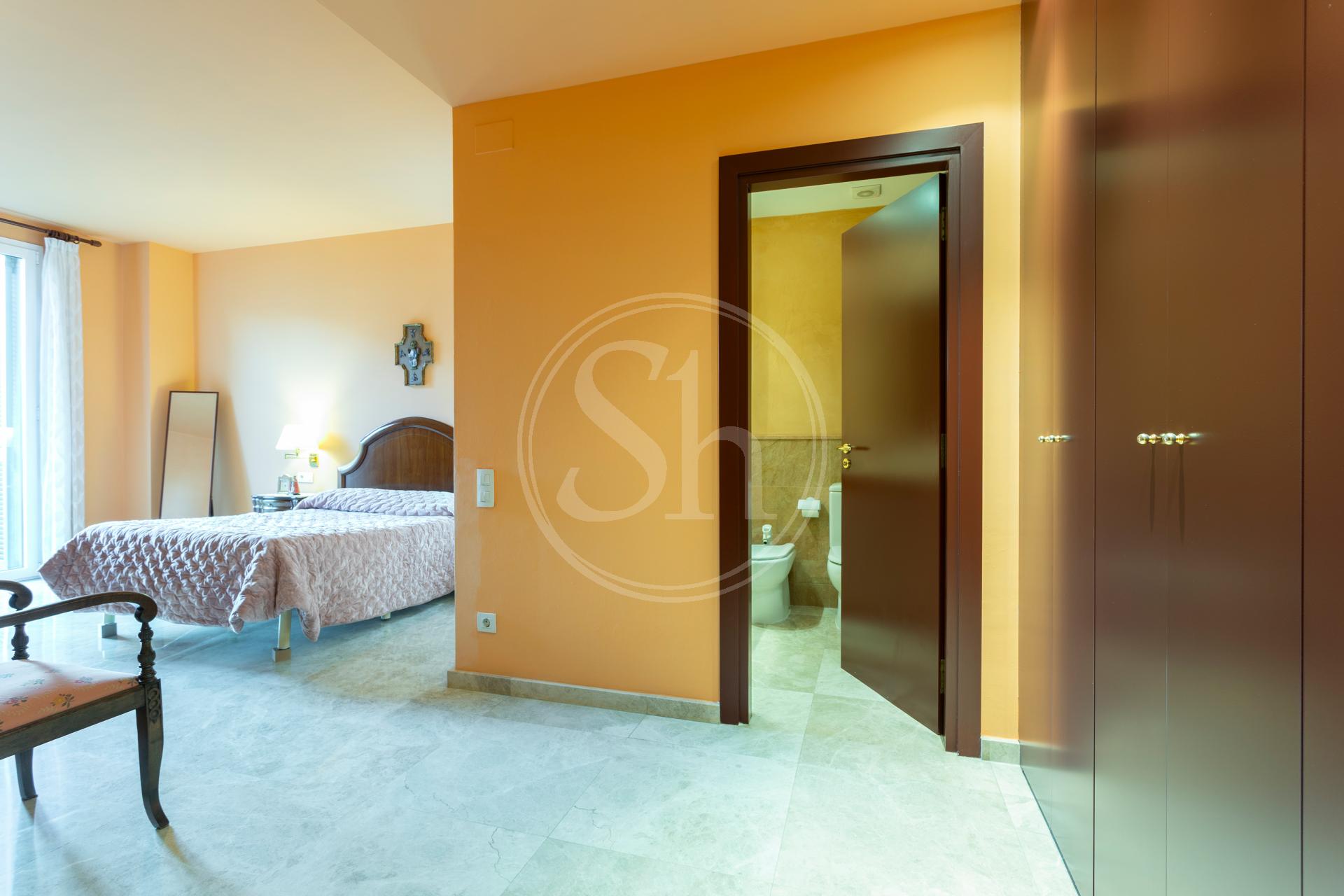 Квартира, расположенная на четвёртом этаже и ориентированная на юг-юго-запад, отличается простором, светом и функциональной планировкой. В квартире две спальни с собственными ванными комнатами, одна из которых с гардеробной, а также есть возможность обустроить третью спальню. При входе вы увидите просторный холл, ведущий в большую, полностью оборудованную отдельную кухню с бытовой техникой и прачечной. Из того же коридора можно попасть в две спальни-люкс, каждая с собственной ванной комнатой, и, наконец, в большую, светлую гостиную-столовую с тремя балконами, которые обеспечивают обильное естественное освещение в течение всего дня.
